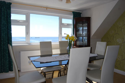 Dining Room 11’6” X 10’6”. With double aspect windows, the front window having uninterrupted sea views across