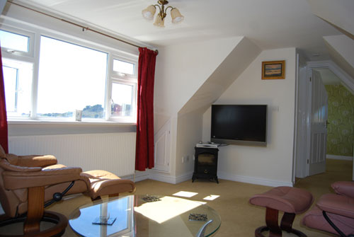 uninterrupted sea views across Porthcressa Bay, convector radiator. Eight power points. Wall mounted flat screen
